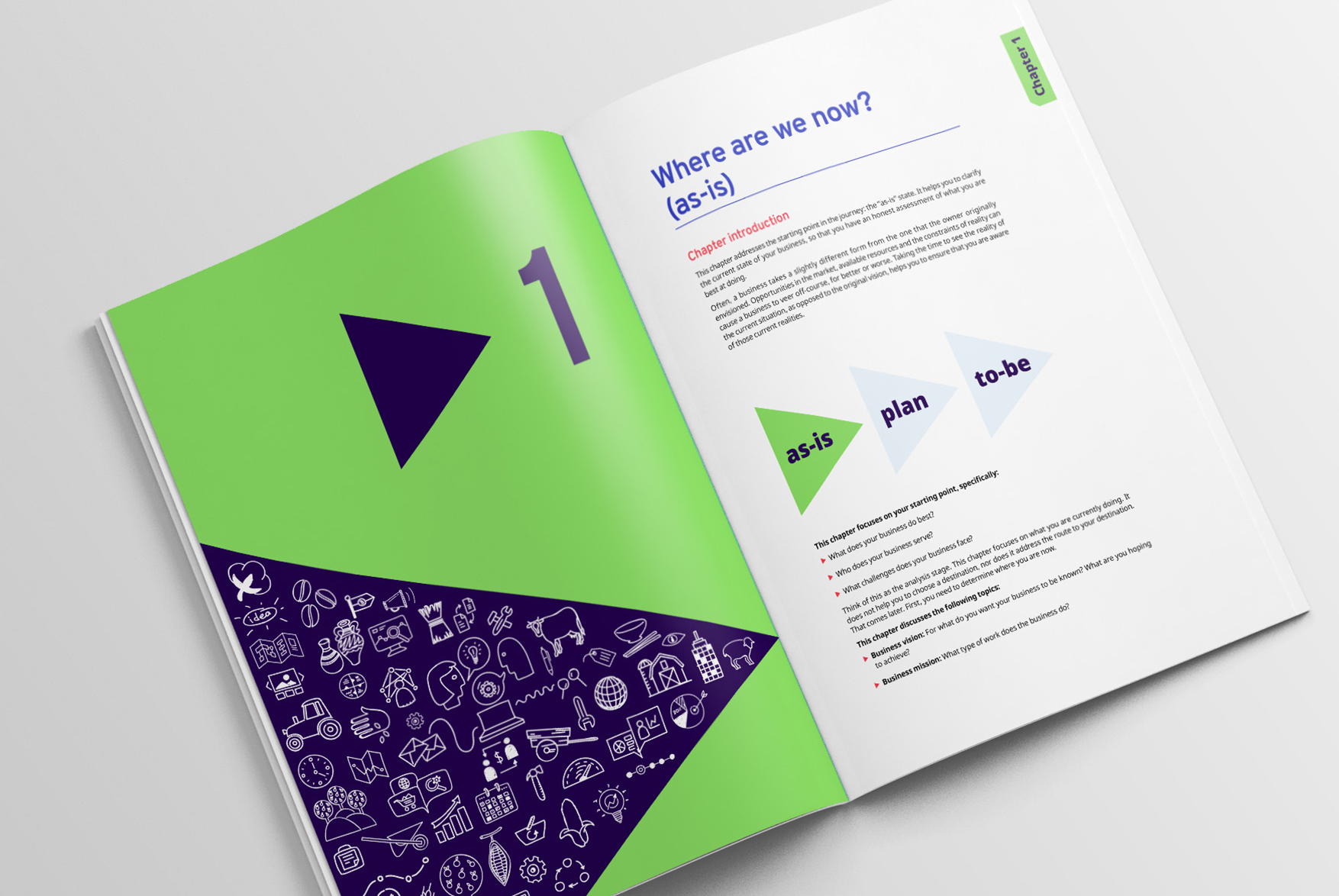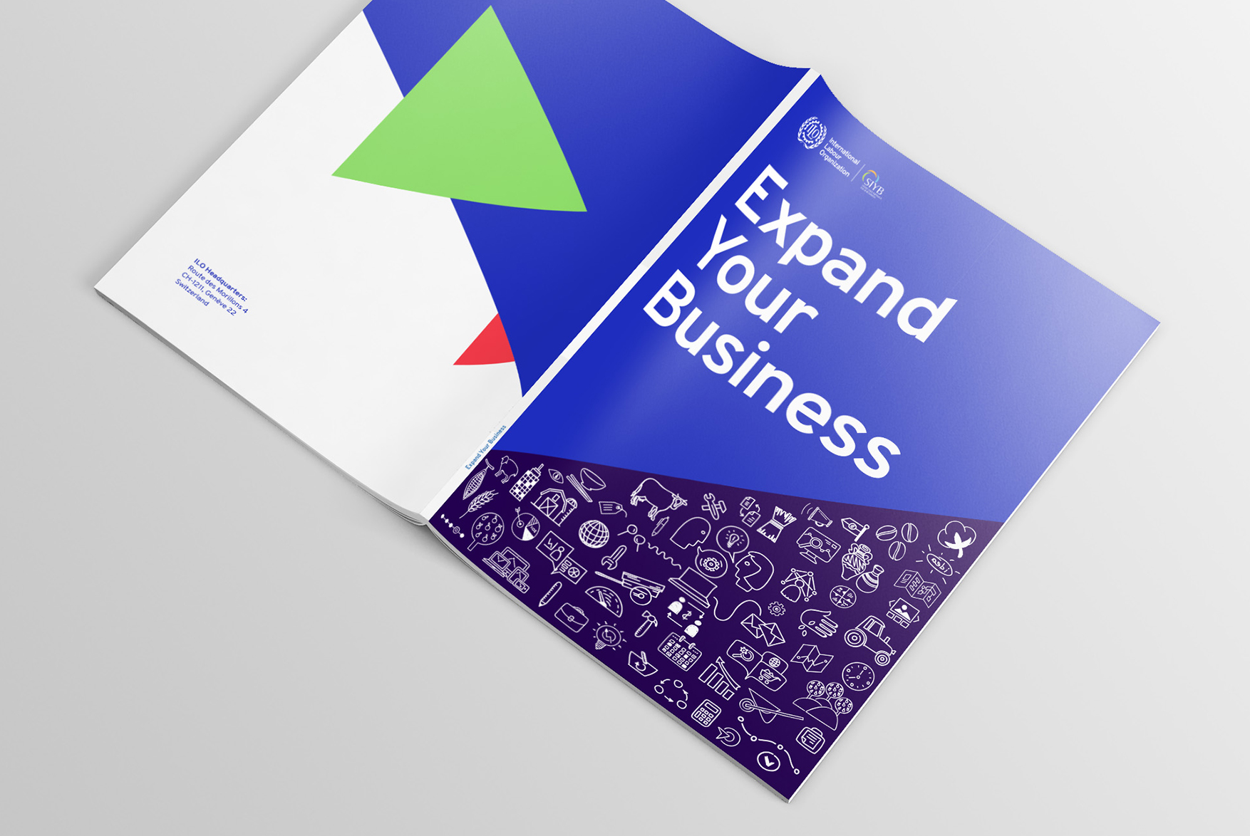 We created the Expand Your Business – Guide, a practical manual featuring custom illustrations developed in line with ILO’s visual identity. Inspired by ILO’s sharp-edged iconography, the illustrations were tailored to give the guide a distinctive yet consistent look and feel.